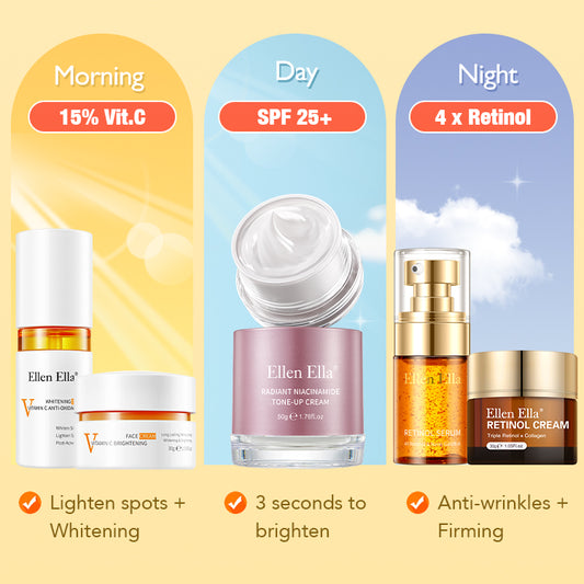 Ellen Ella upgrade Advanced skin care regimen 24-hour skin care-whitening + sun protection + anti-aging